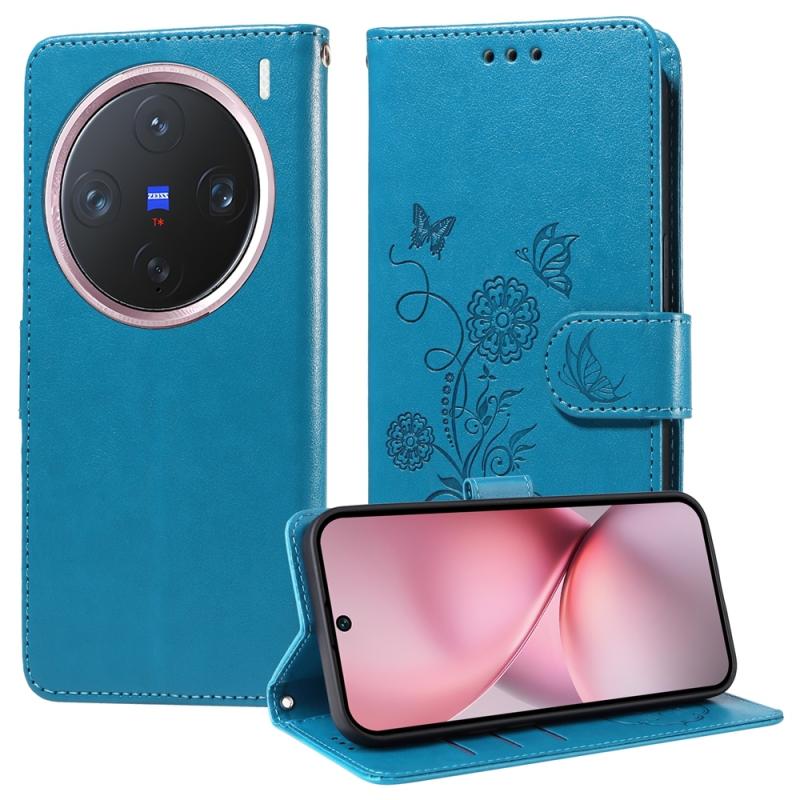 For vivo X200 Pro mini Embossed Butterfly Flowers Leather Phone Case(Blue)
