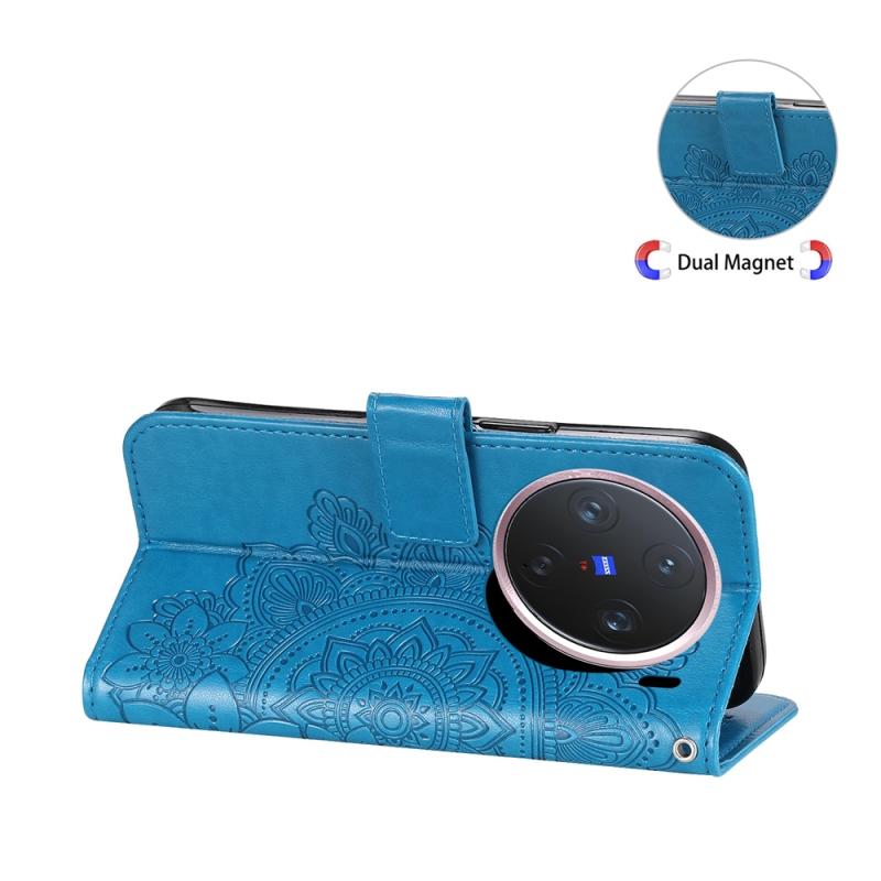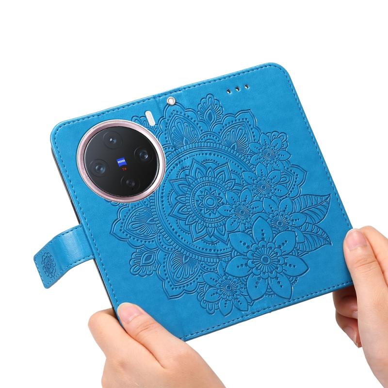 For vivo X200 Pro mini Seven-petal Flowers Embossing Leather Phone Case(Blue)