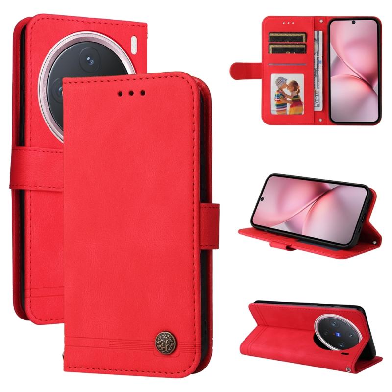 For vivo X200 Pro mini Skin Feel Life Tree Metal Button Leather Phone Case(Red)