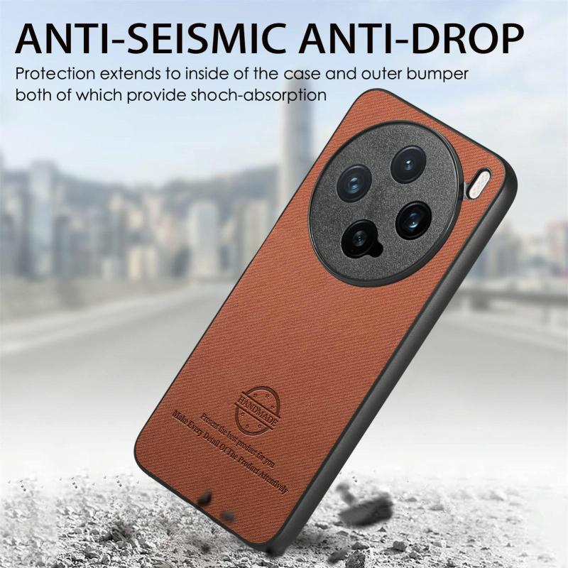 For vivo X200 Pro mini Twill Fabric Leather Skin Back Phone Case(Brown)