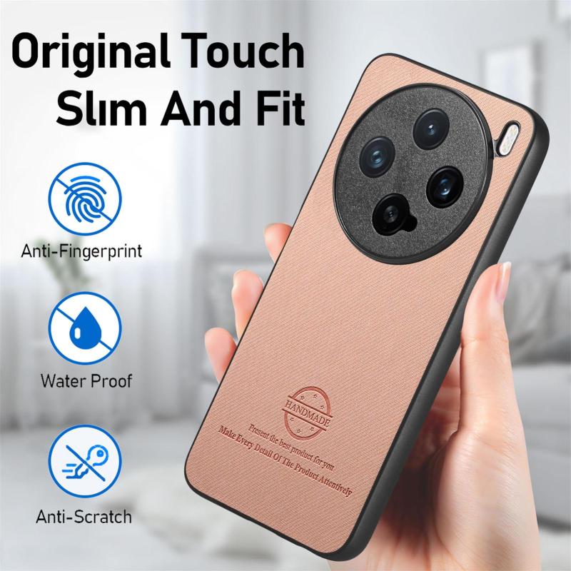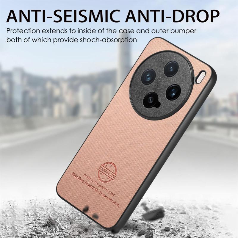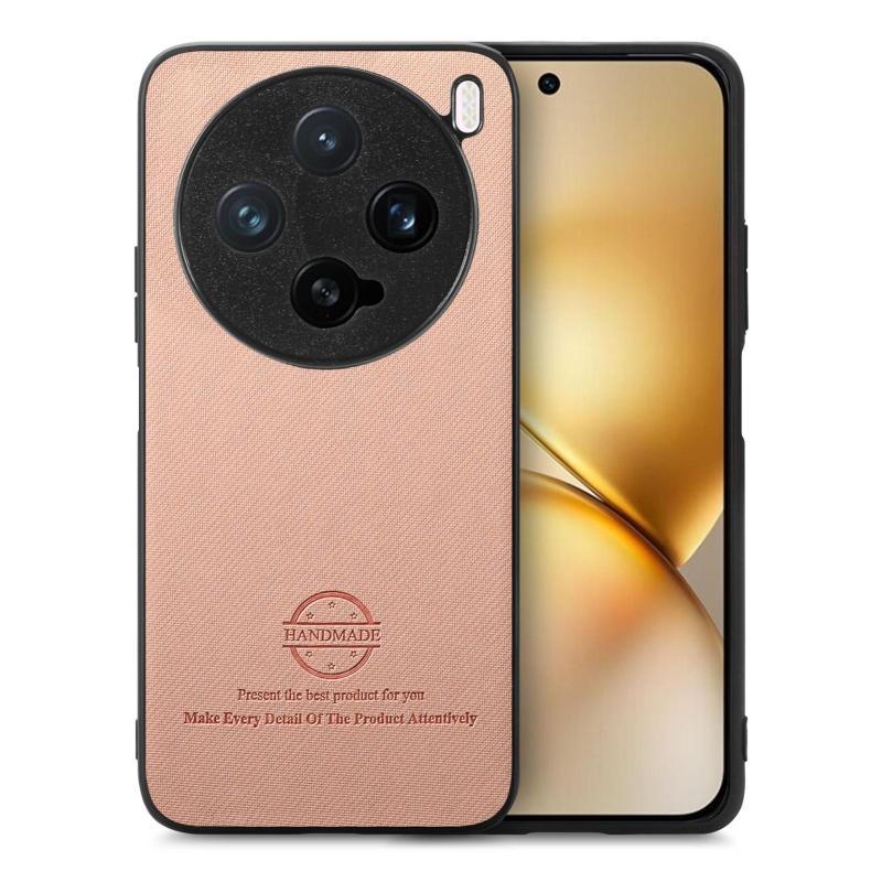 For vivo X200 Pro mini Twill Fabric Leather Skin Back Phone Case(Pink)