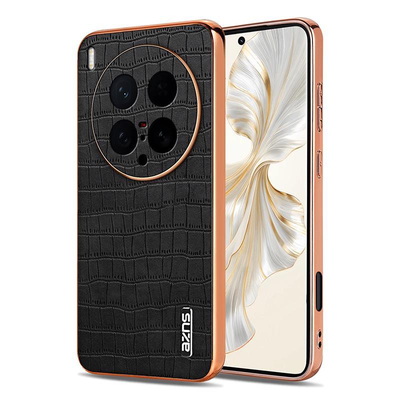 For vivo X200 Ultra AZNS Electroplated Frame Crocodile Texture Full Coverage Phone Case(Black) (AZNS)