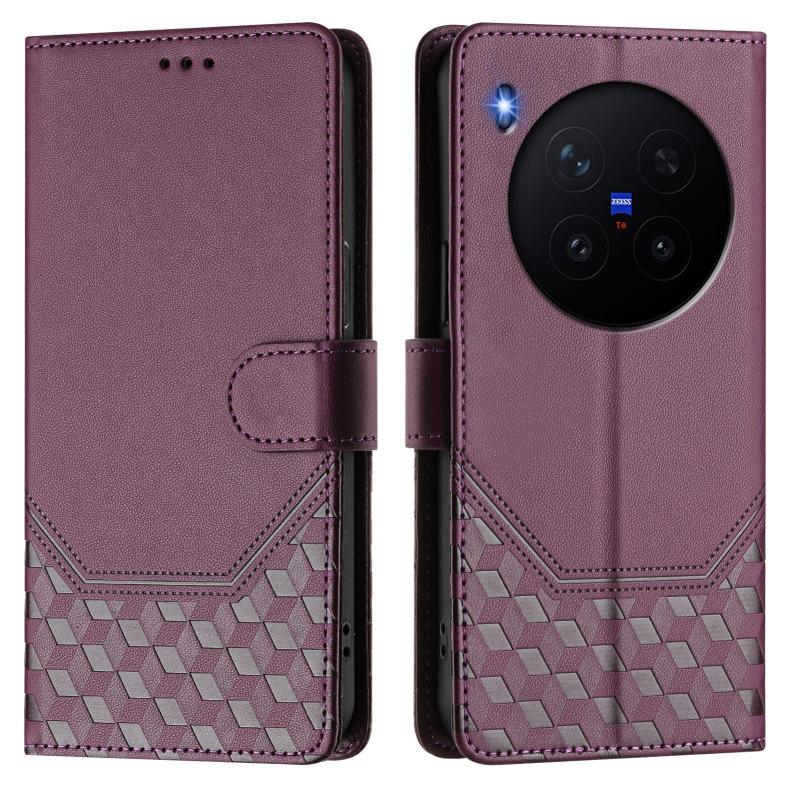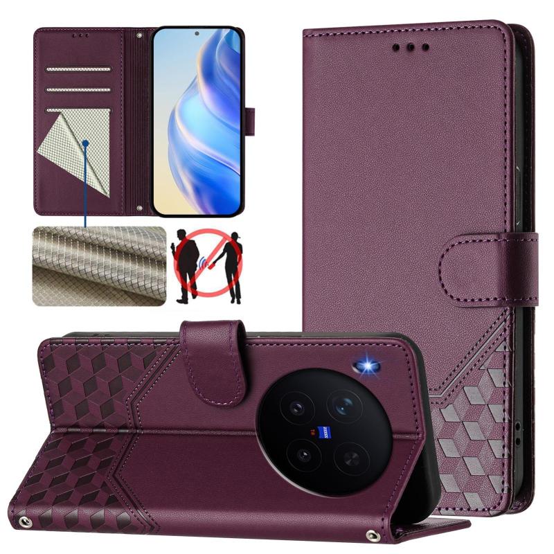 For vivo X300 Pro 5G Honeycomb Embossing RFID Leather Phone Case(Violet)