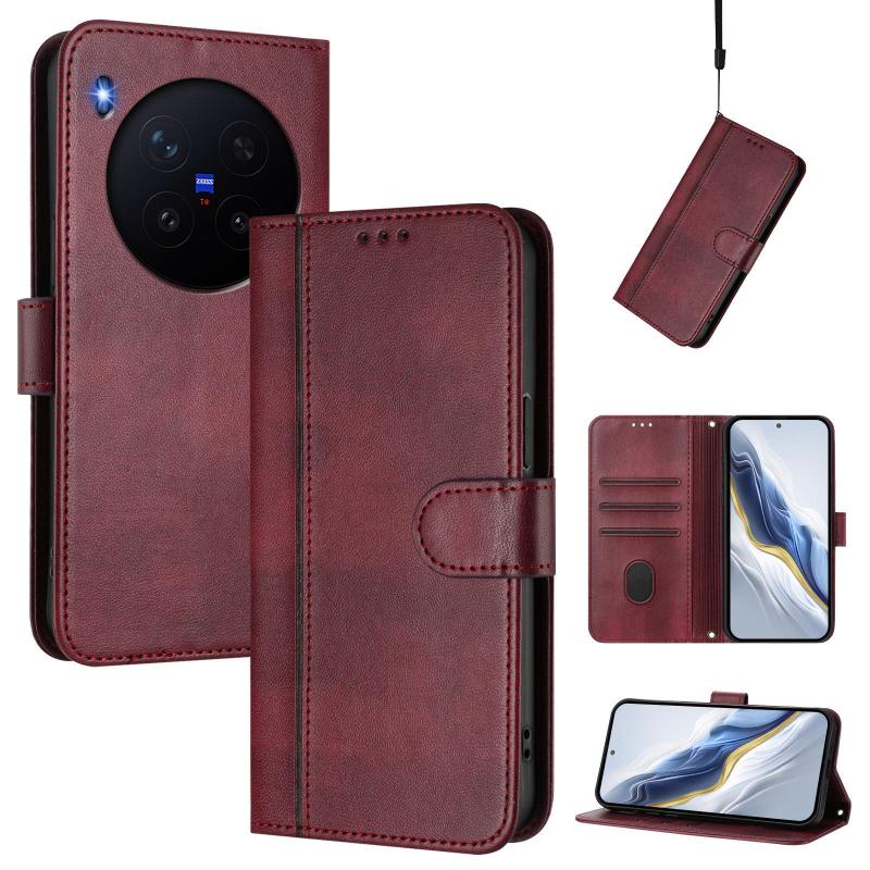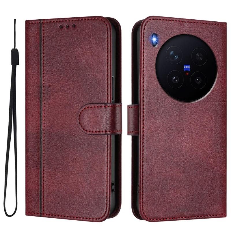 For vivo X300 Pro 5G Line Splicing Buckle Retro Leather Phone Case(Wine Red)