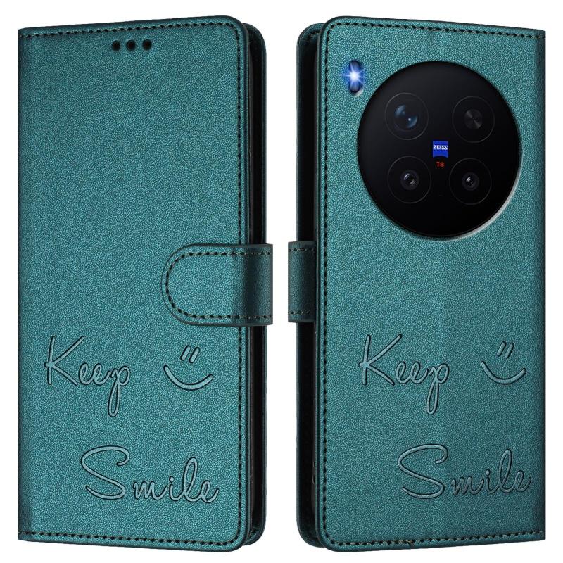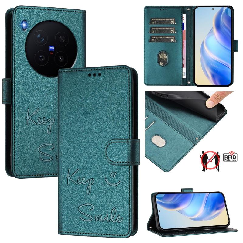 For vivo X300 Pro 5G Smile Embossing RFID Leather Phone Case(Peacock Green)