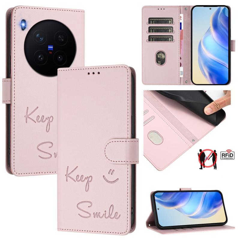 For vivo X300 Pro 5G Smile Embossing RFID Leather Phone Case(Pink)
