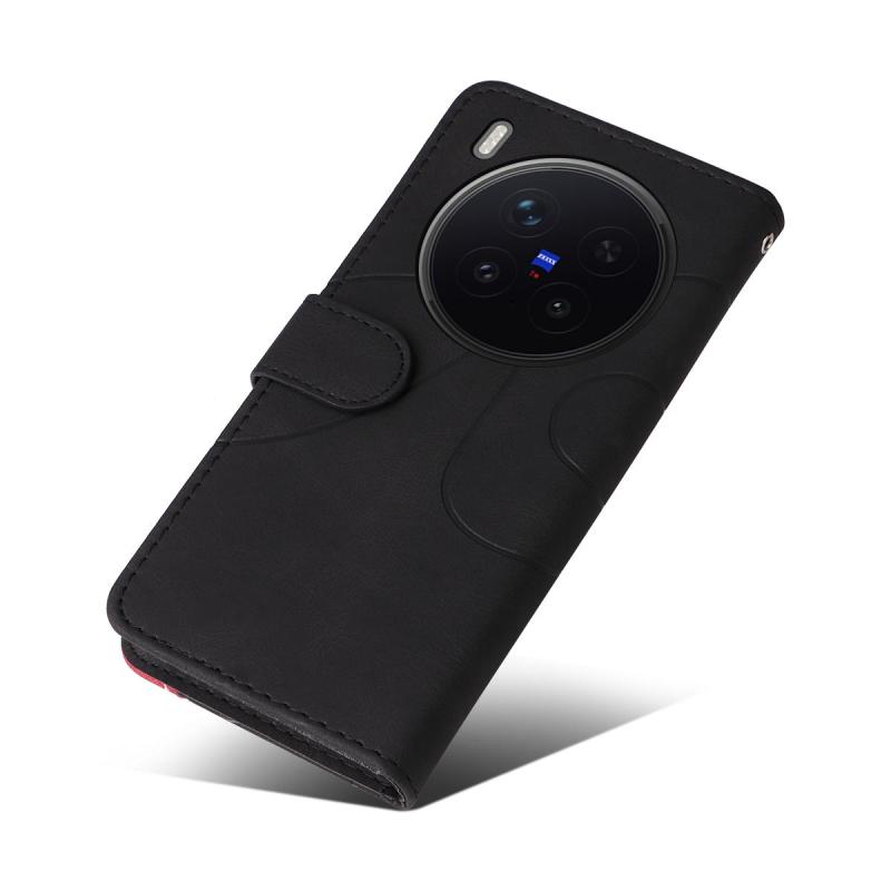 For vivo X300 Pro Dual-color Splicing Flip Leather Phone Case(Black)