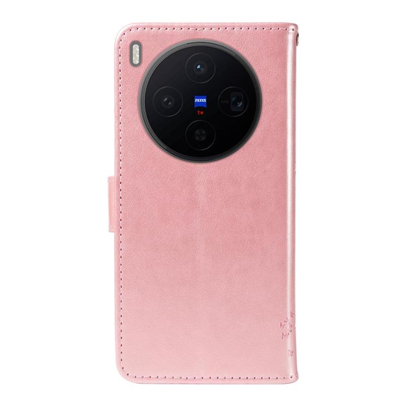 For vivo X300 Tree & Cat Embossed Pattern Flip Leather Phone Case(Rose Gold)