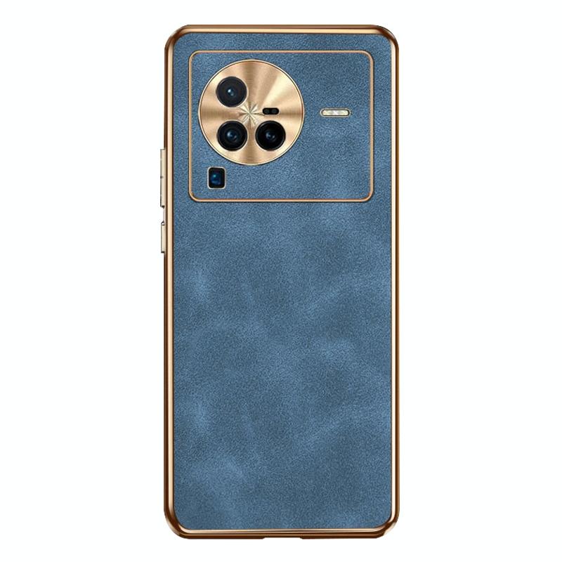 For vivo X80 Pro Electroplating Lambskin Leather Phone Case(Blue)