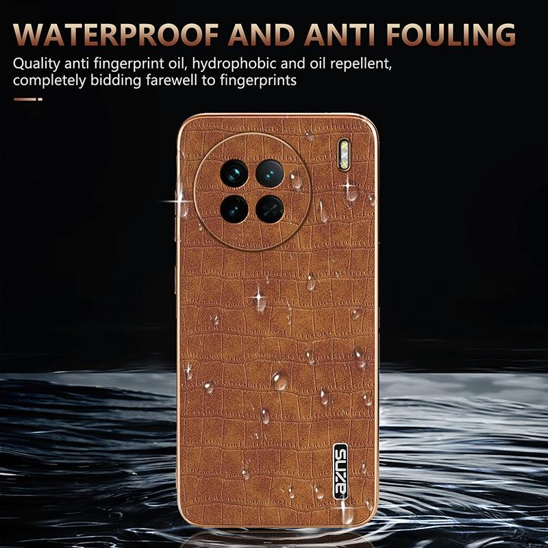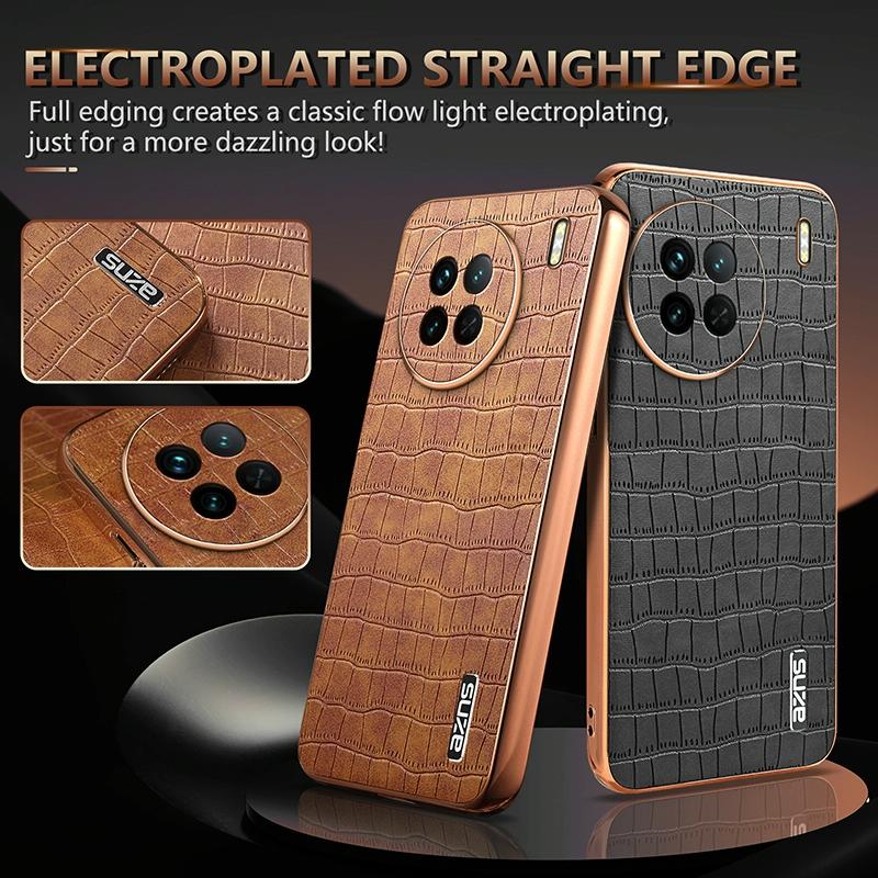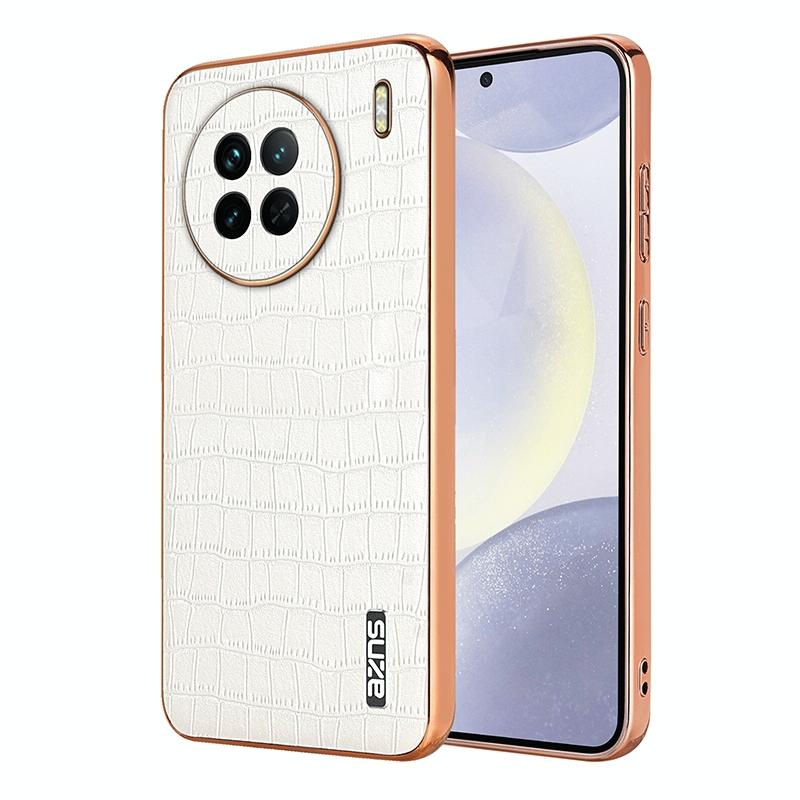 For vivo X90 / X90s AZNS Electroplated Frame Crocodile Texture Full Coverage Phone Case(White) (AZNS)