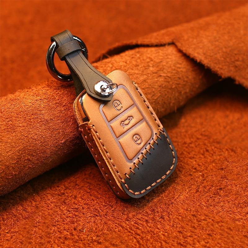 For Volkswagen Car Cowhide Leather Key Protective Cover Key Case, A Version(Brown)