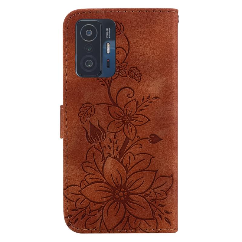 For Xiaomi 11T / 11T Pro Lily Embossed Leather Phone Case(Brown)