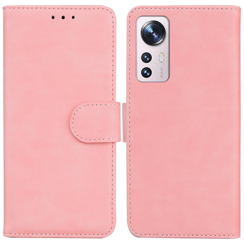 For Xiaomi 12 Pro Skin Feel Pure Color Flip Leather Phone Case(Pink)