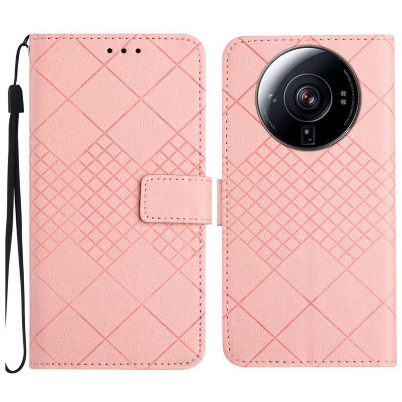 For Xiaomi 12S Ultra Rhombic Grid Texture Leather Phone Case(Pink)