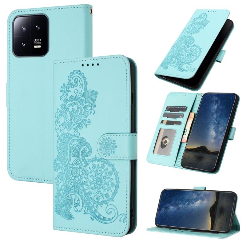 For Xiaomi 13 Datura Flower Embossed Flip Leather Phone Case(Light blue)