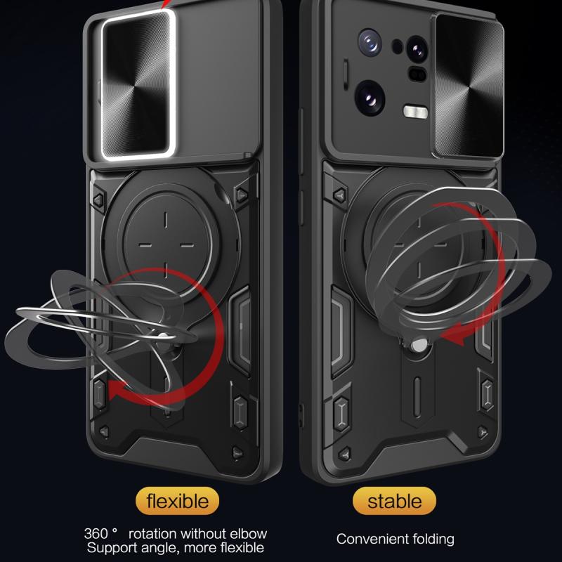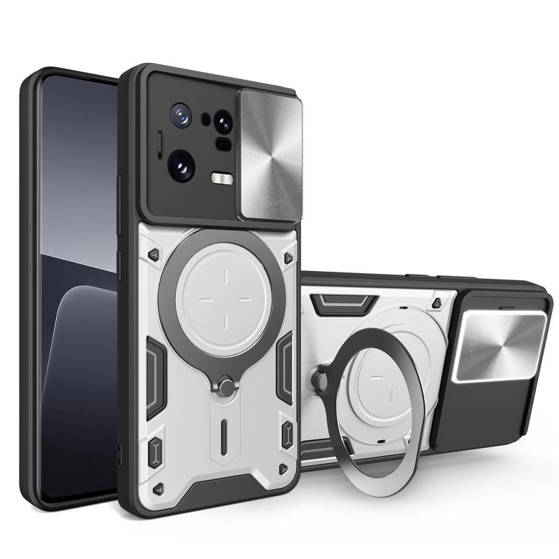 For Xiaomi 13 Pro CD Texture Sliding Camshield Magnetic Holder Phone Case(Silver)