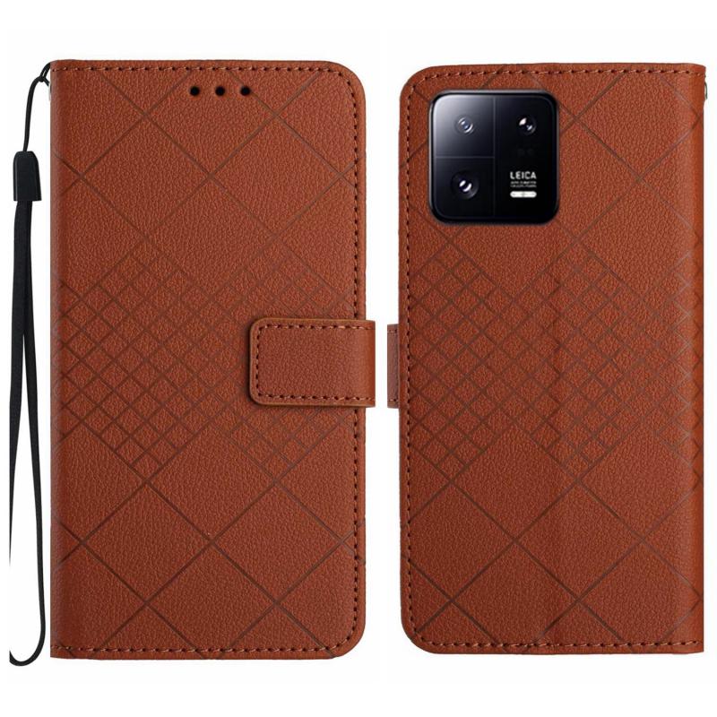 For Xiaomi 13 Rhombic Grid Texture Leather Phone Case(Brown)