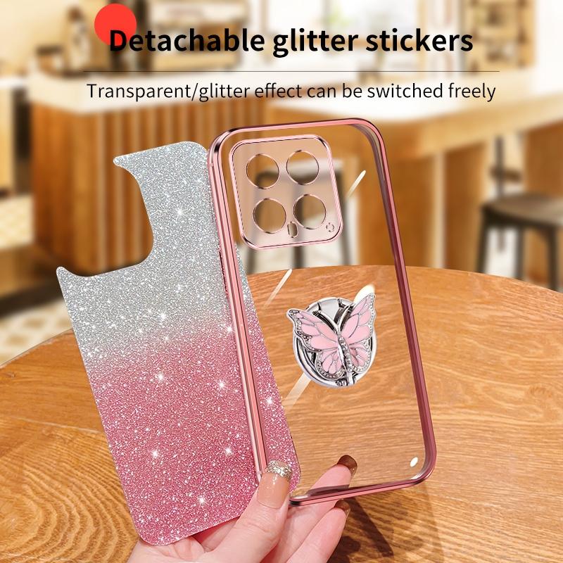 For Xiaomi 14 Plated Gradient Glitter Butterfly Holder TPU Phone Case(Pink)