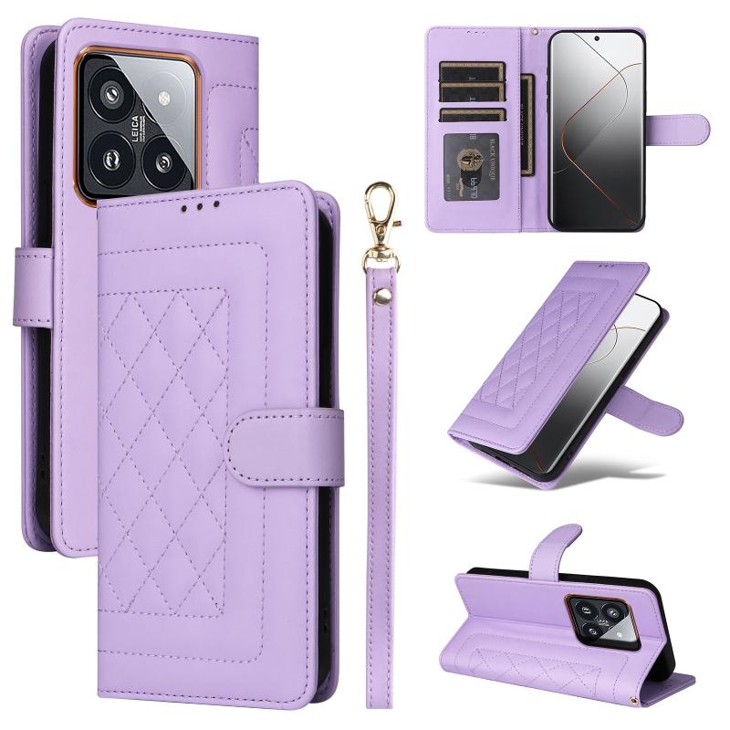 For Xiaomi 14 Pro 5G Diamond Lattice Leather Flip Phone Case(Light Purple)