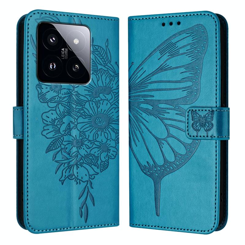 For Xiaomi 14 Pro 5G Global Embossed Butterfly Leather Phone Case(Blue)