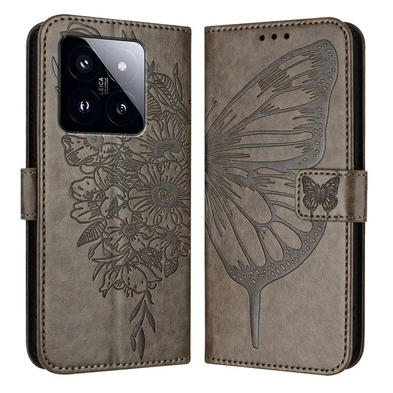 For Xiaomi 14 Pro 5G Global Embossed Butterfly Leather Phone Case(Grey)