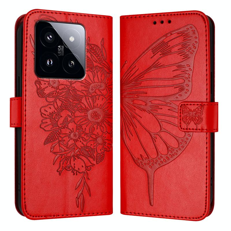 For Xiaomi 14 Pro 5G Global Embossed Butterfly Leather Phone Case(Red)