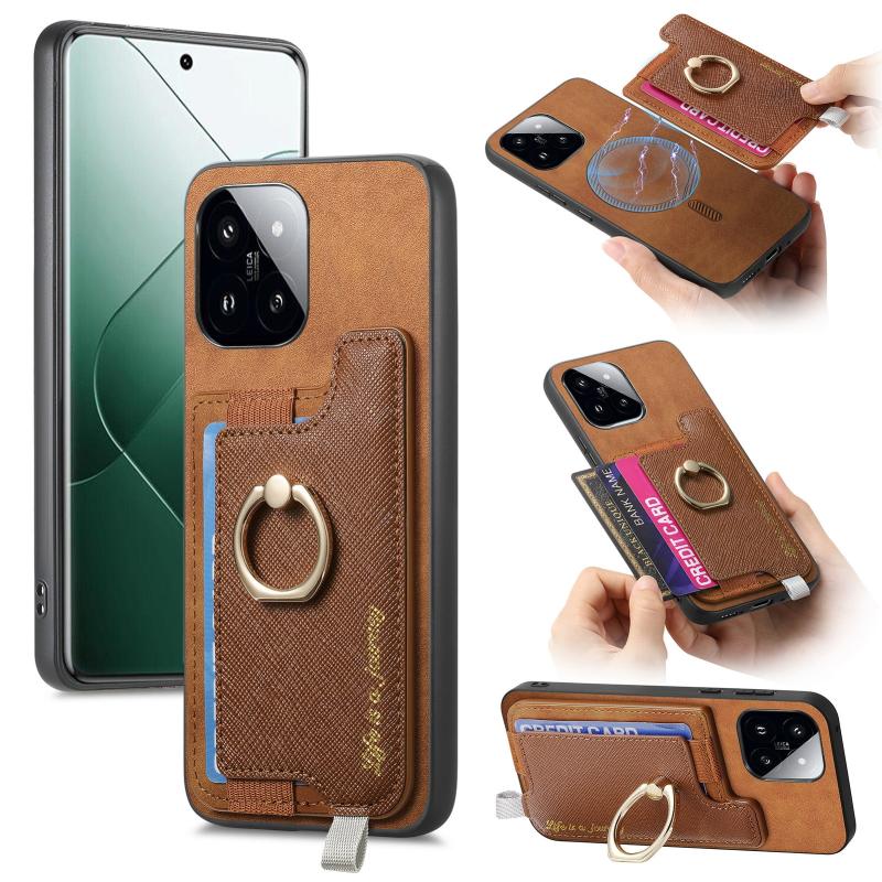 For Xiaomi 14 Pro 5G Retro Magsafe Cross Leather Ring Holder Card Bag Phone Case(Brown)