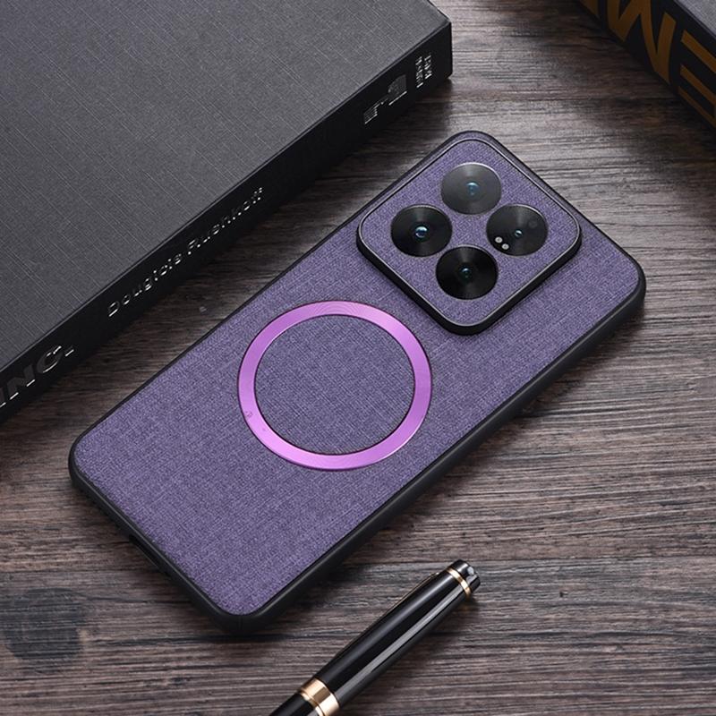 For Xiaomi 14 Pro CD Magnetic Cloth Texture PU Phone Case(Purple)