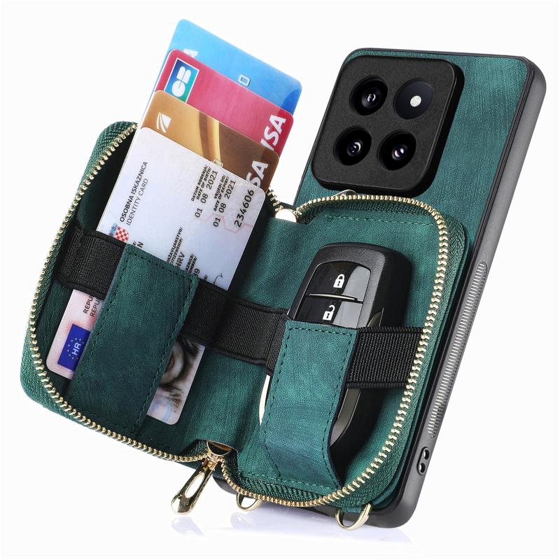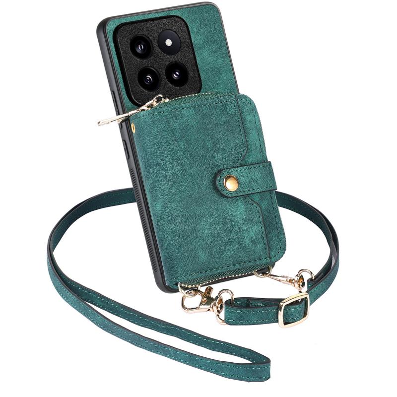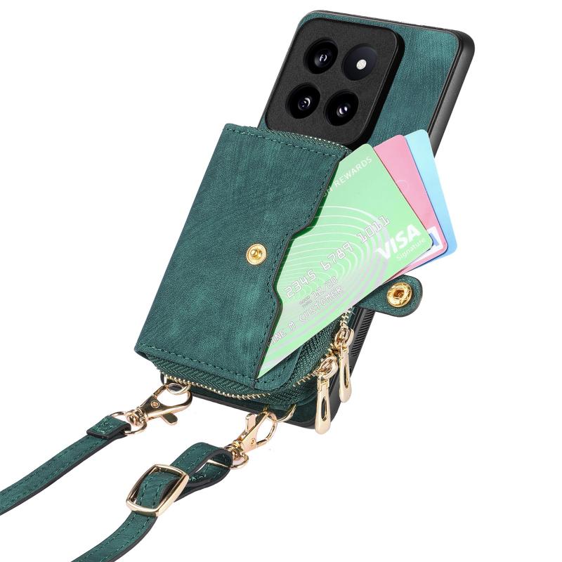 For Xiaomi 14 Pro Crossbody Multi-function Zipper Wallet Phone Case(Green)