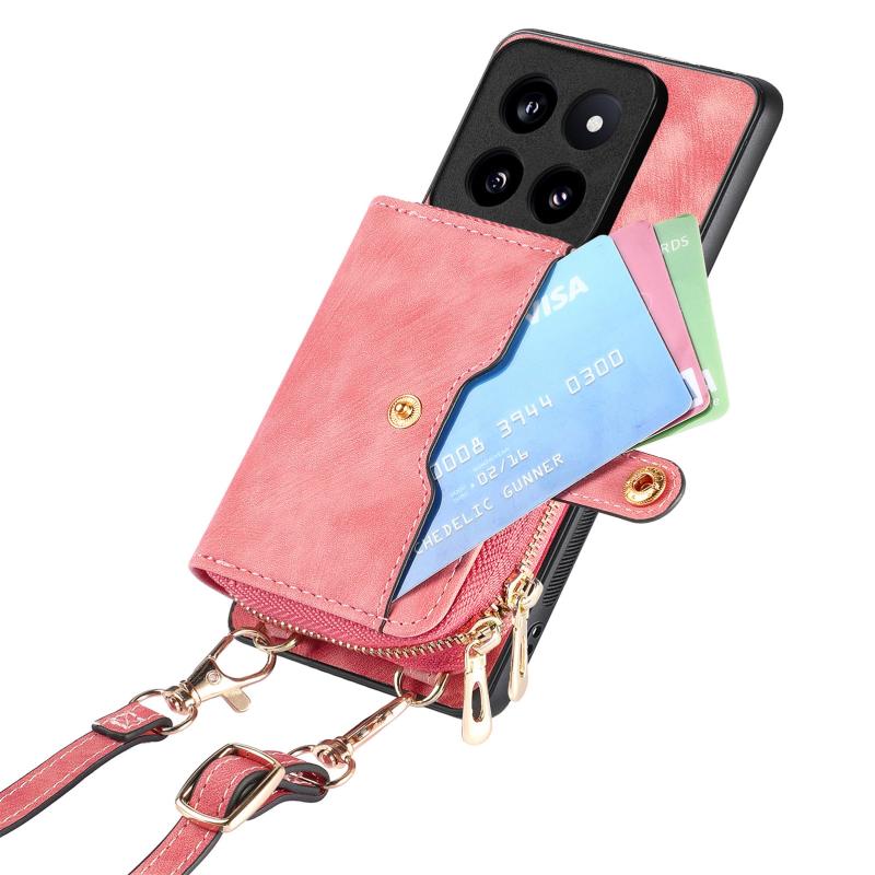 For Xiaomi 14 Pro Crossbody Multi-function Zipper Wallet Phone Case(Pink)