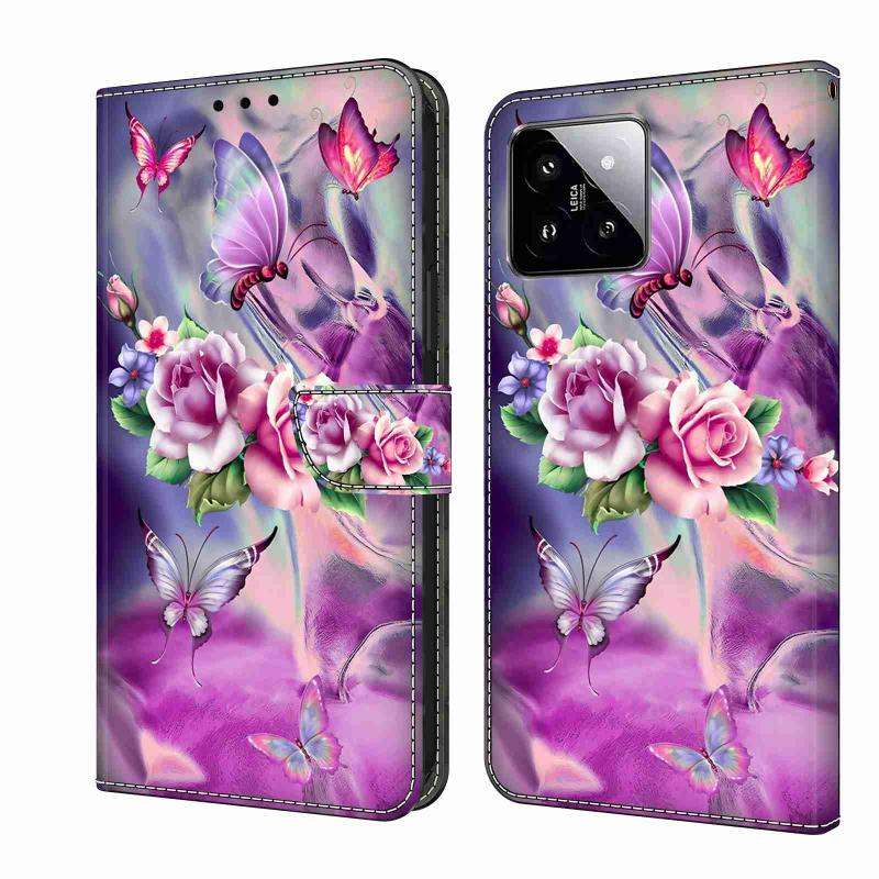 For Xiaomi 14 Pro Crystal 3D Shockproof Protective Leather Phone Case(Butterfly)
