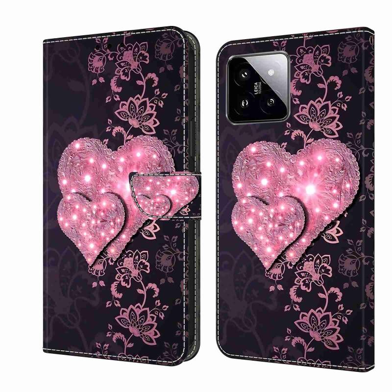 For Xiaomi 14 Pro Crystal 3D Shockproof Protective Leather Phone Case(Lace Love)