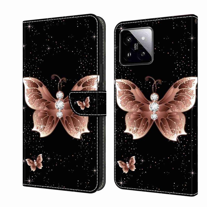 For Xiaomi 14 Pro Crystal 3D Shockproof Protective Leather Phone Case(Pink Diamond Butterfly)
