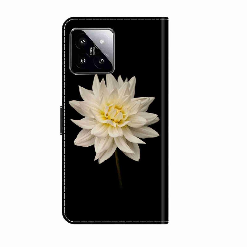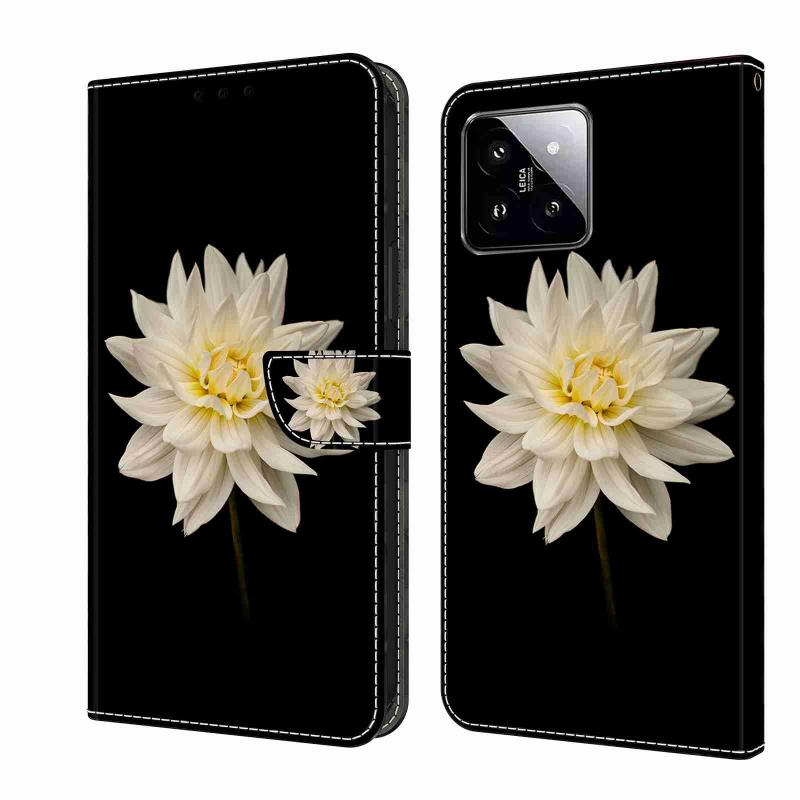 For Xiaomi 14 Pro Crystal 3D Shockproof Protective Leather Phone Case(White Flower)