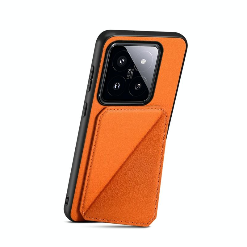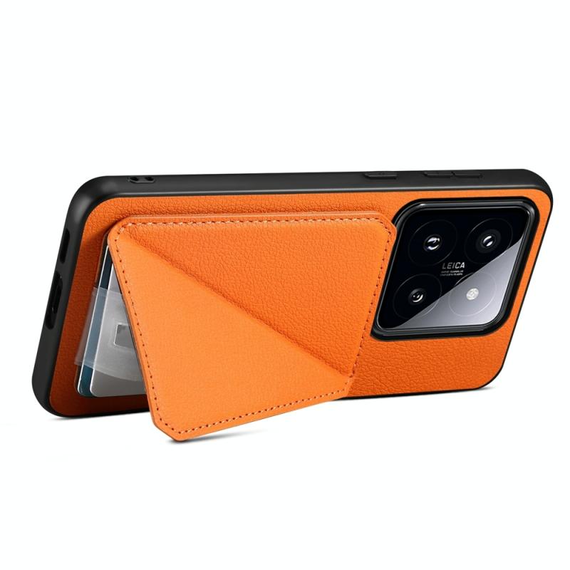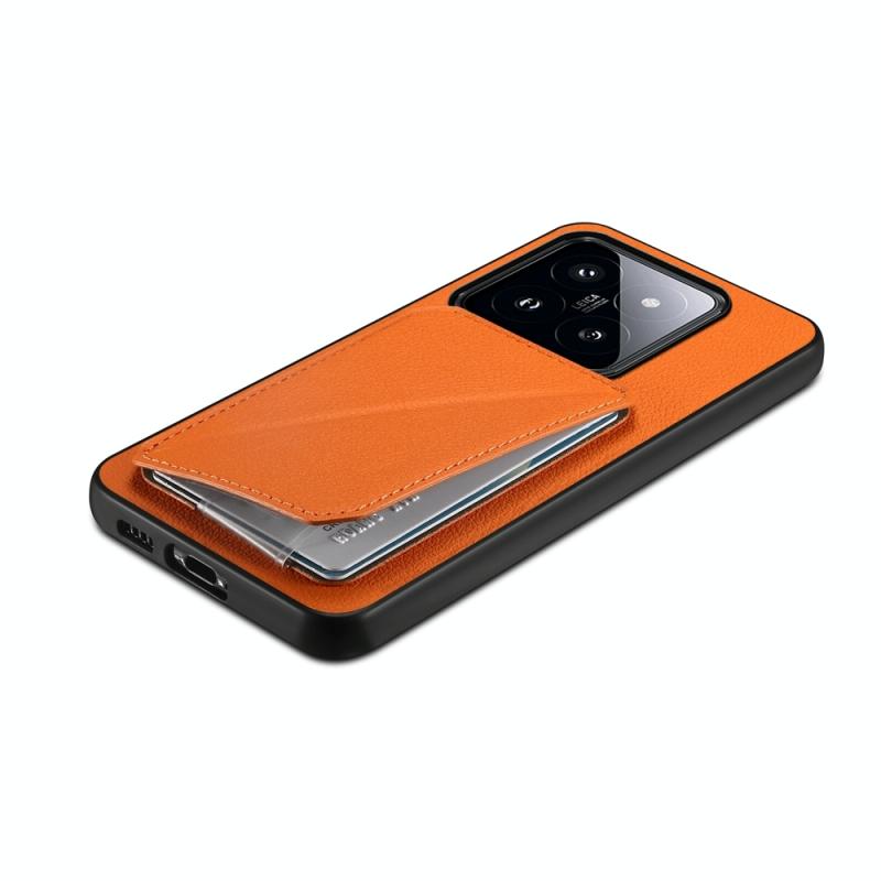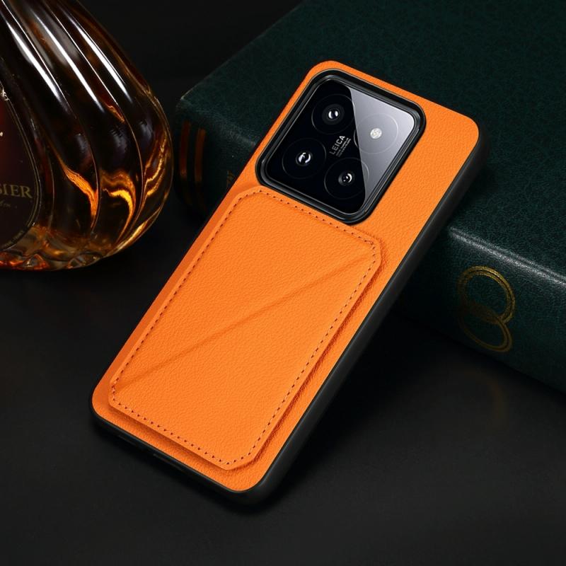 For Xiaomi 14 Pro D04 Calf Texture Dual Card Slot Holder Phone Case(Orange)
