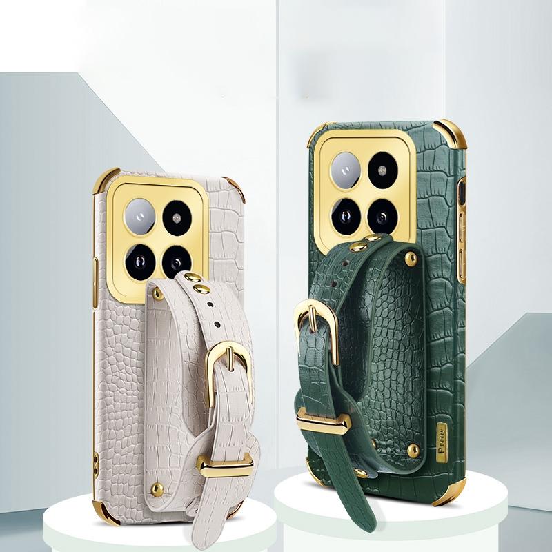 For Xiaomi 14 Pro Electroplated Wrist Strap Crocodile Leather Back Phone Case(Green)