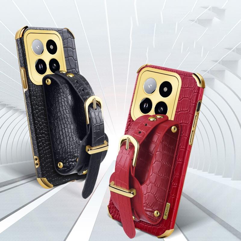 For Xiaomi 14 Pro Electroplated Wrist Strap Crocodile Leather Back Phone Case(Red)