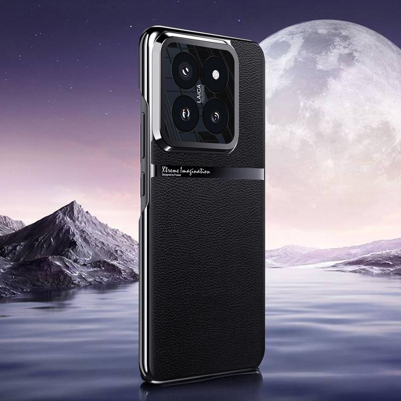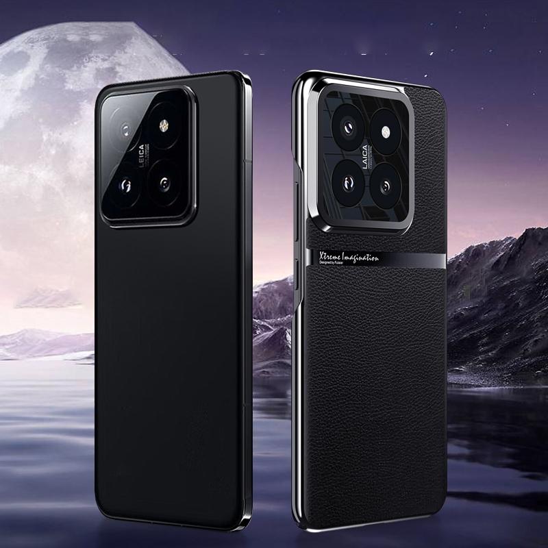 For Xiaomi 14 Pro Electroplating Plain-leather All-inclusive Shockproof Phone Case(Black)