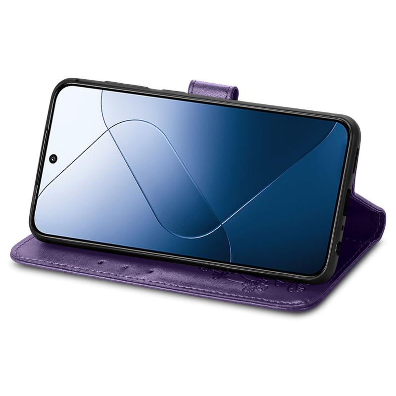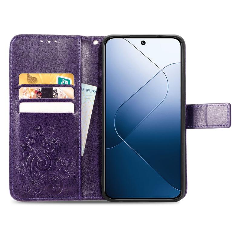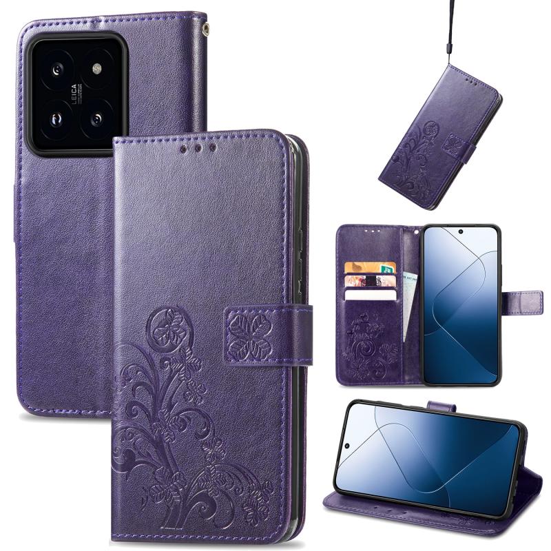 For Xiaomi 14 Pro Four-leaf Clasp Embossed Leather Phone Case(Purple)