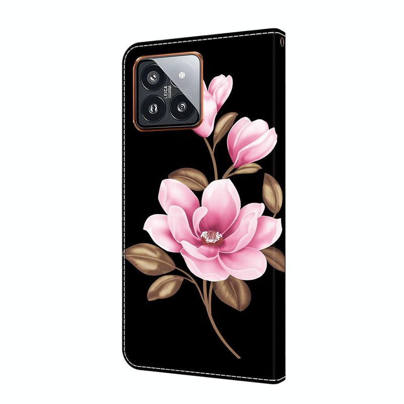 For Xiaomi 14 Pro Fresh Painted Leather Phone Case(Black Flowers)