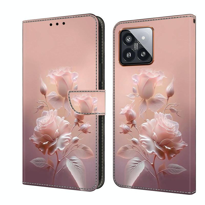 For Xiaomi 14 Pro Fresh Painted Leather Phone Case(Ceramic Flowers)