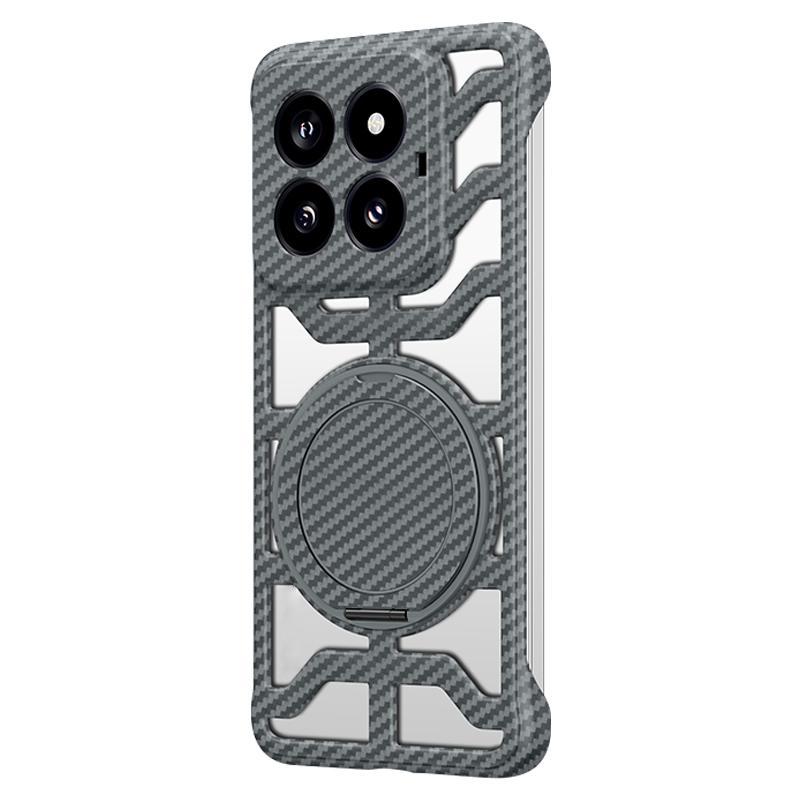 For Xiaomi 14 Pro Hollow Carbon Fiber Rotating Bracket MagSafe Phone Case(Grey)