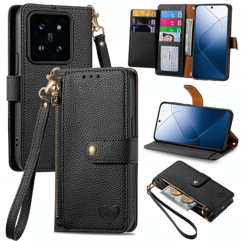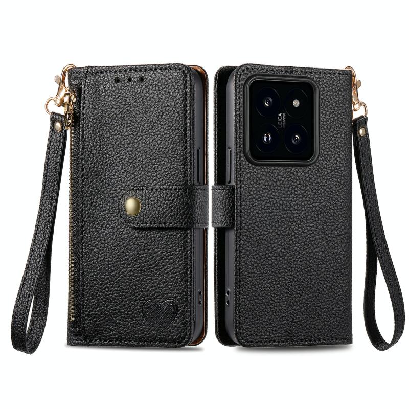 For Xiaomi 14 Pro Love Zipper Lanyard Leather Phone Case(Black)