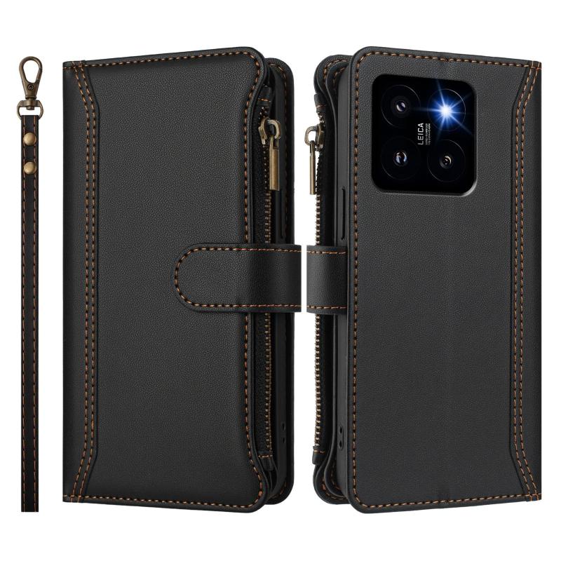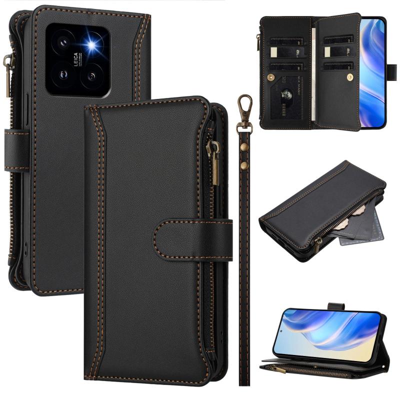 For Xiaomi 14 Pro Magnetic Closure 9 Card Slots Zipper Leather Case with Hand Strap(Black)