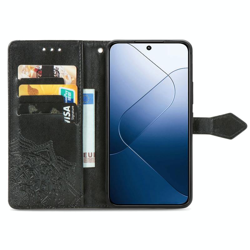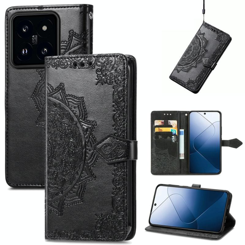 For Xiaomi 14 Pro Mandala Flower Embossed Leather Phone Case(Black)