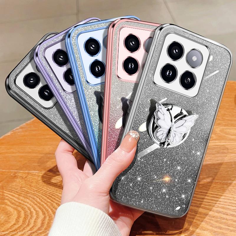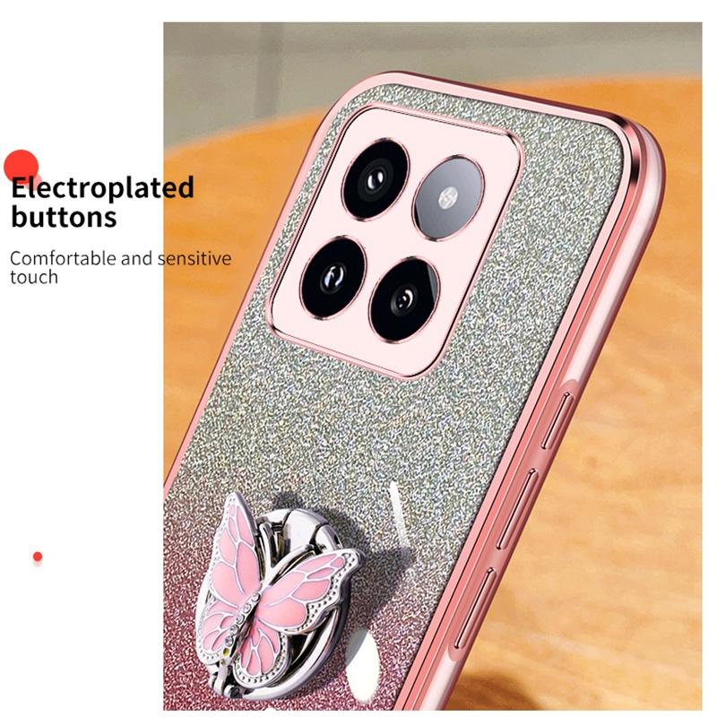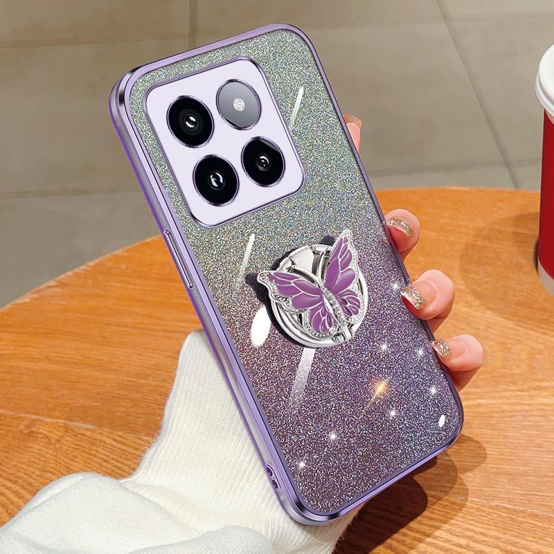 For Xiaomi 14 Pro Plated Gradient Glitter Butterfly Holder TPU Phone Case(Purple)