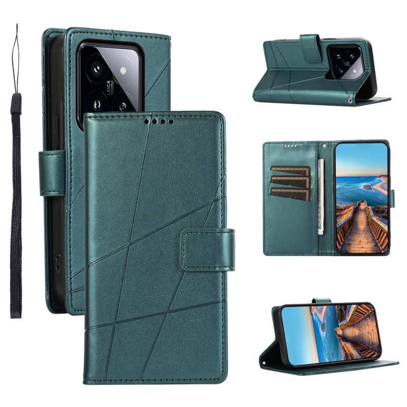For Xiaomi 14 Pro PU Genuine Leather Texture Embossed Line Phone Case(Green)
