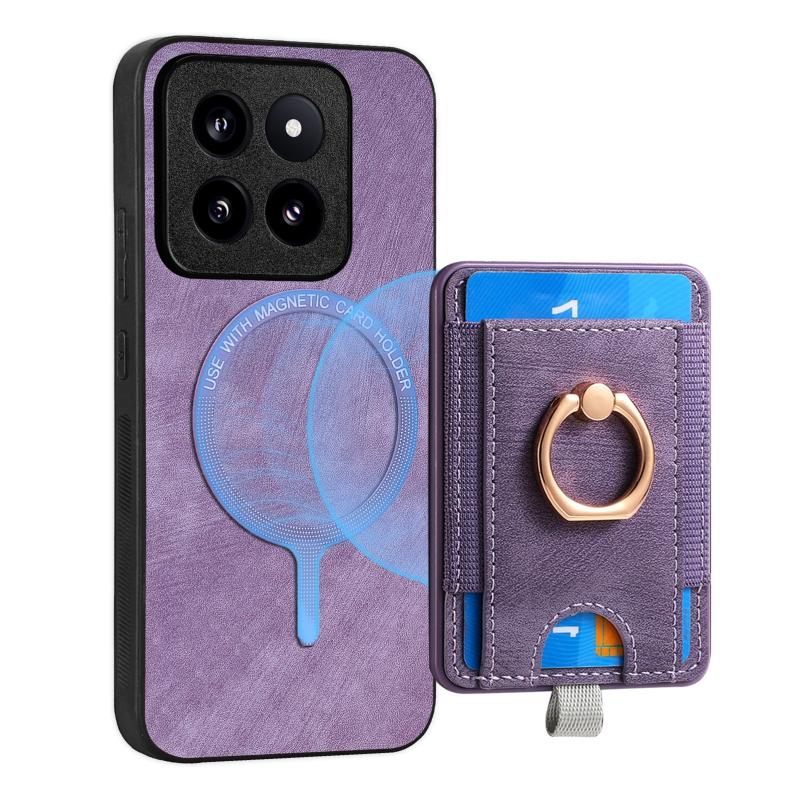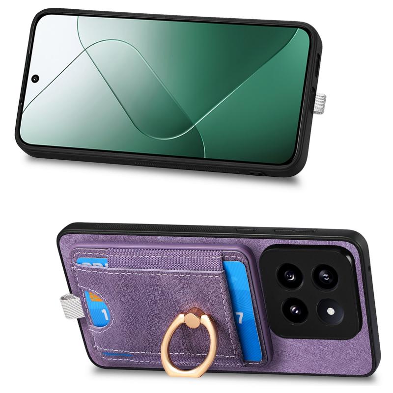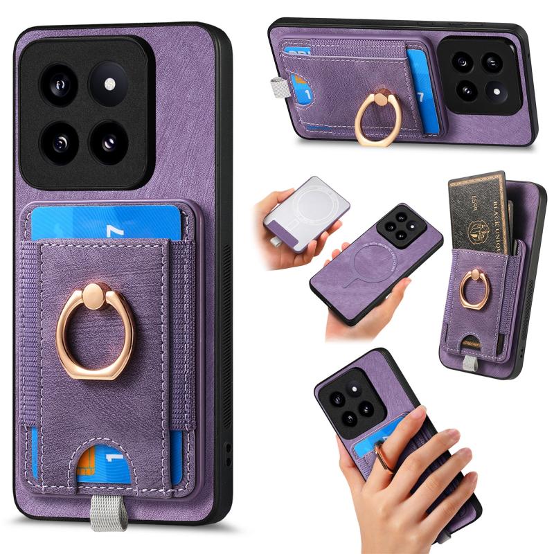 For Xiaomi 14 Pro Retro Splitable Magnetic Card Bag Leather Phone Case(Purple)