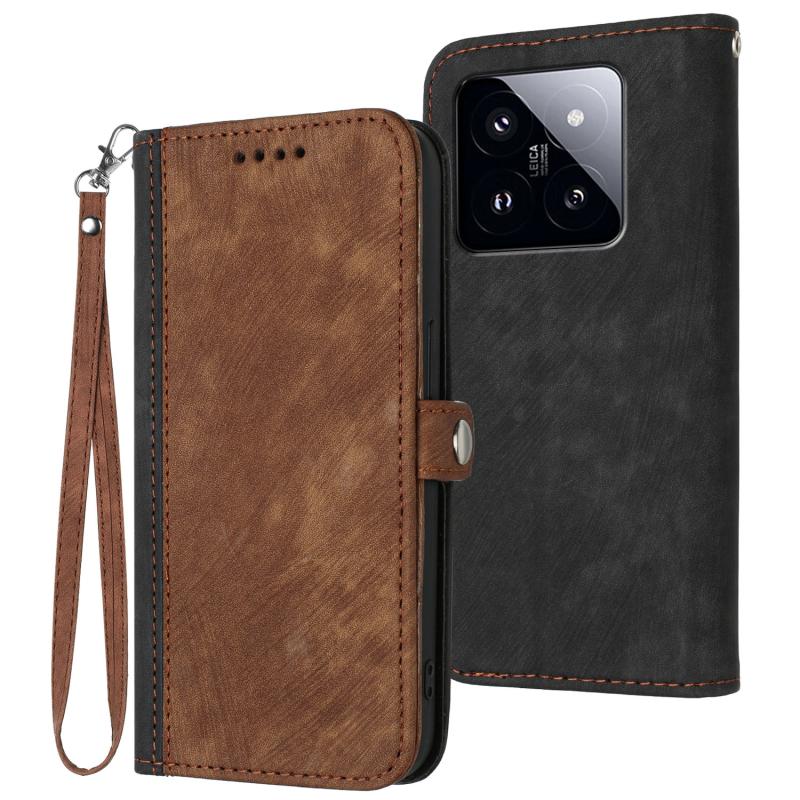 For Xiaomi 14 Pro Side Buckle Double Fold Hand Strap Leather Phone Case(Brown)