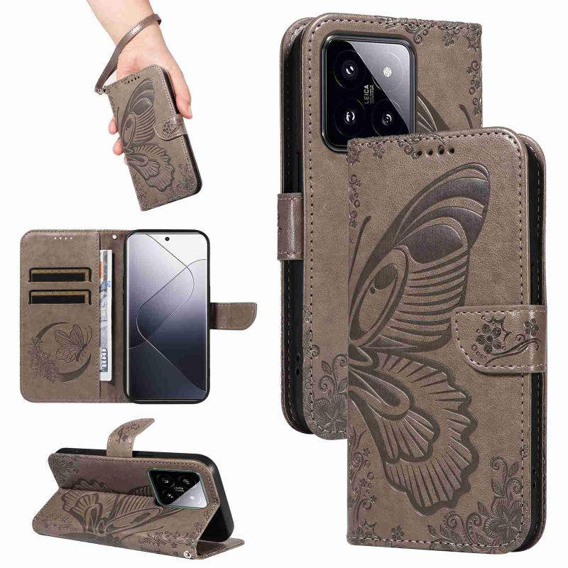 For Xiaomi 14 Pro Swallowtail Butterfly Embossed Leather Phone Case(Grey)
